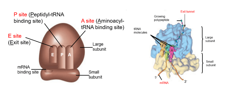 A site (aminoacyl site): The site on the ribosome where a new tRNA carrying an amino acid enters.
