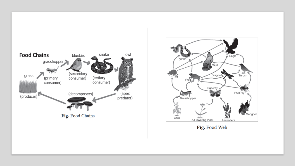 | Example | Grass → Rabbit → Fox | Dead leaves → Earthworm → Bird |